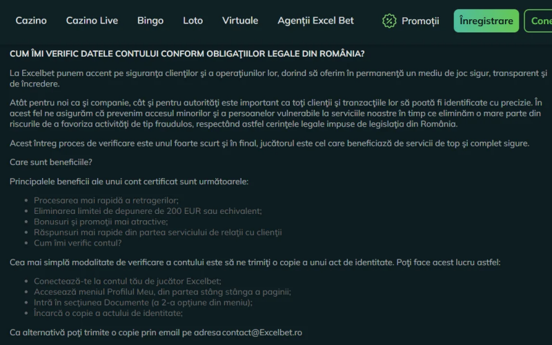 Dacă aveți probleme care necesită explicații suplimentare sau documente atașate, puteți contacta echipa de suport prin email Excelbet.