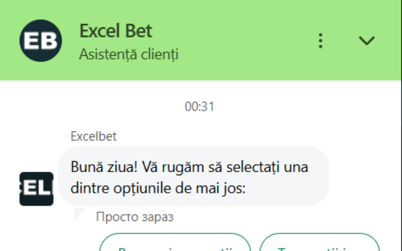 Cea mai rapidă metodă de contact este live chat Excelbet, care este disponibil direct pe site și oferă răspunsuri aproape instantanee.